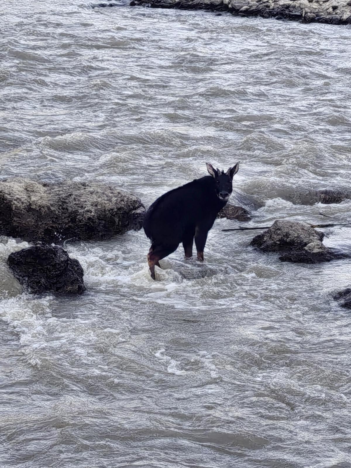 近日,云南永德大雪山国家级自然保护区巡护人员在日常巡护过程中,发现一只中华鬣羚被困于河道中央浅滩,情况危急。经过迅速而科学的救援,这只中华鬣羚成功脱险,在全面检查并确认其具备野外生存能力后,已被安全放归自然。