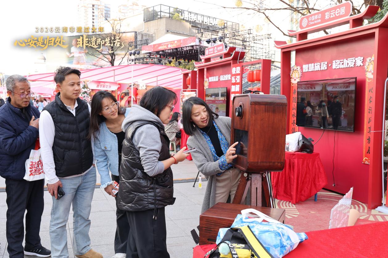连日来,“2026云南非遗过大年”活动在云南省昆明市南屏街如火如荼地开展,其中,“乡愁旅居大观园”成为“打卡”点之一。面塑巧塑红嘴鸥灵动身姿,锔瓷展位上“我有金刚钻 可揽瓷器活”的标语格外醒目……无不展示着“非遗”与“旅居”元素的叠加。数智助农、智慧旅居等区域则展示着云南旅居产业的数字化发展。
