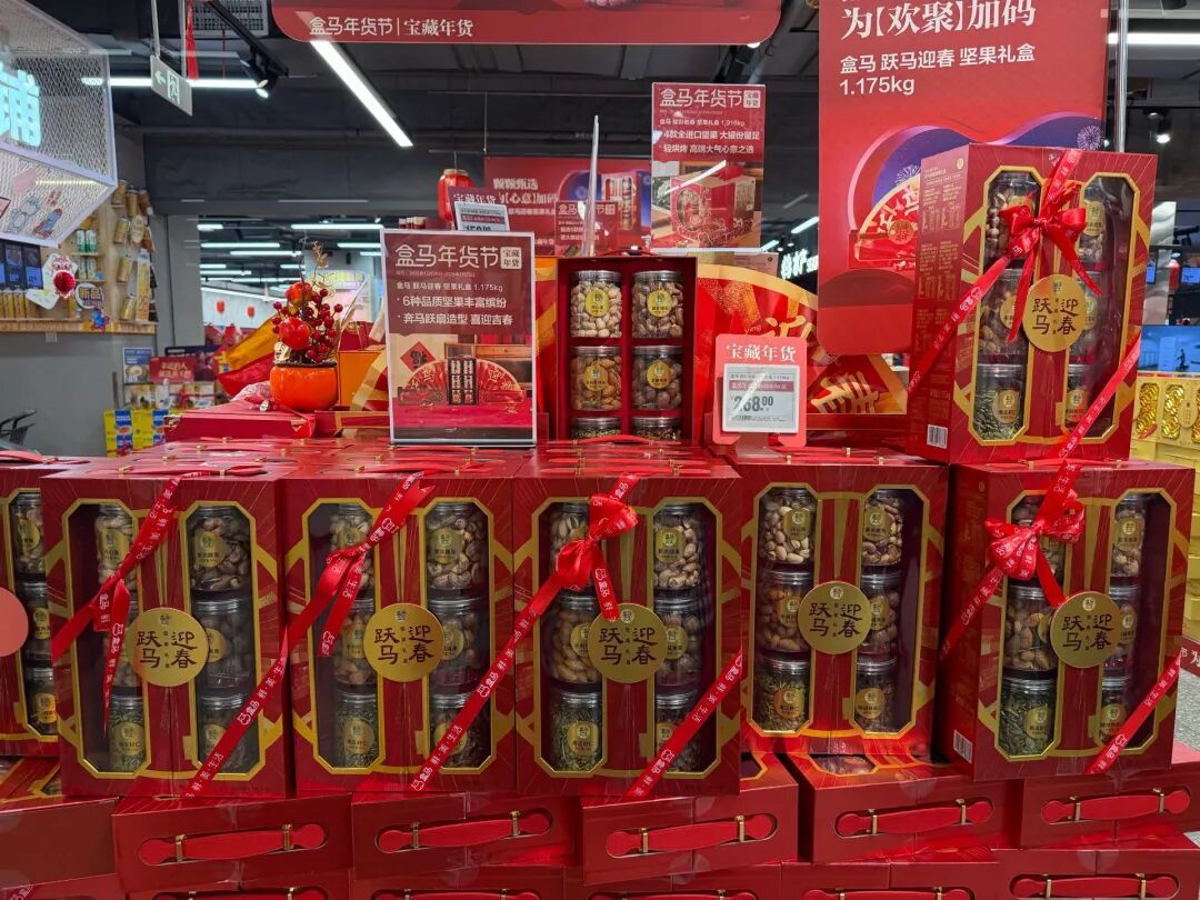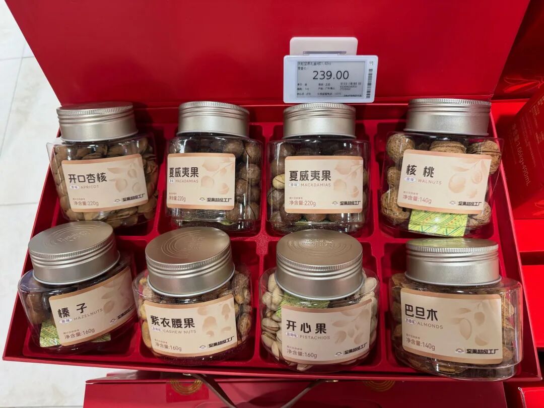 在盒马鲜生(顺城购物中心店),一款净重1.916公斤的坚果礼盒售价268元,另一款有12个品类的礼盒售价299元。在柏联广场的百盛超市,一款净重1.53公斤的礼盒售价199元,“这款礼盒上市已有一个月,虽然价格没涨,但去年此时已售出上千盒,今年的销量大大缩水。”一名销售人员表示,预计春节前几天会推出促销活动以刺激消费。