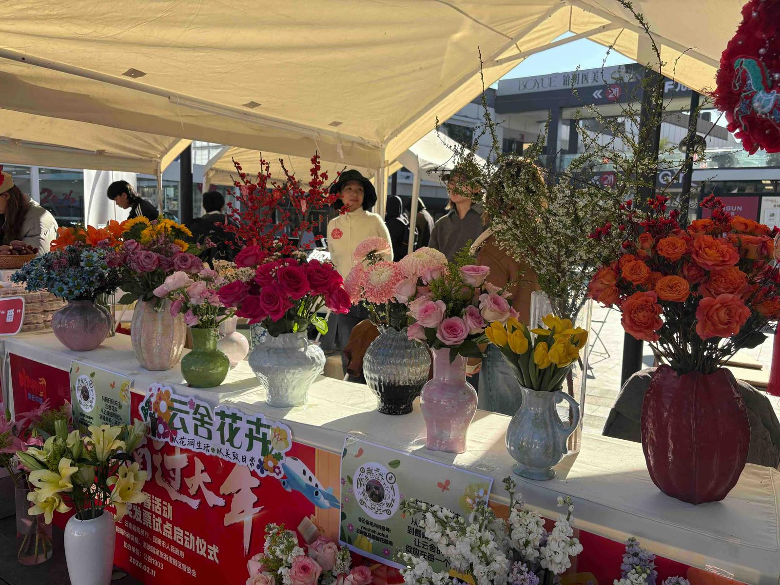 为保障年宵花充足供应,花颜悦色、云舍甄选等众多云花企业提前与种植基地签订保供订单锁定货源,构建起从田间地头到千家万户的稳定配送体系,上百万枝冬青、玫瑰已整装待发,奔赴新春之约。