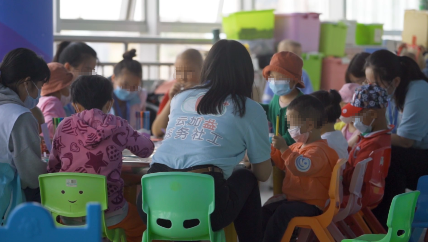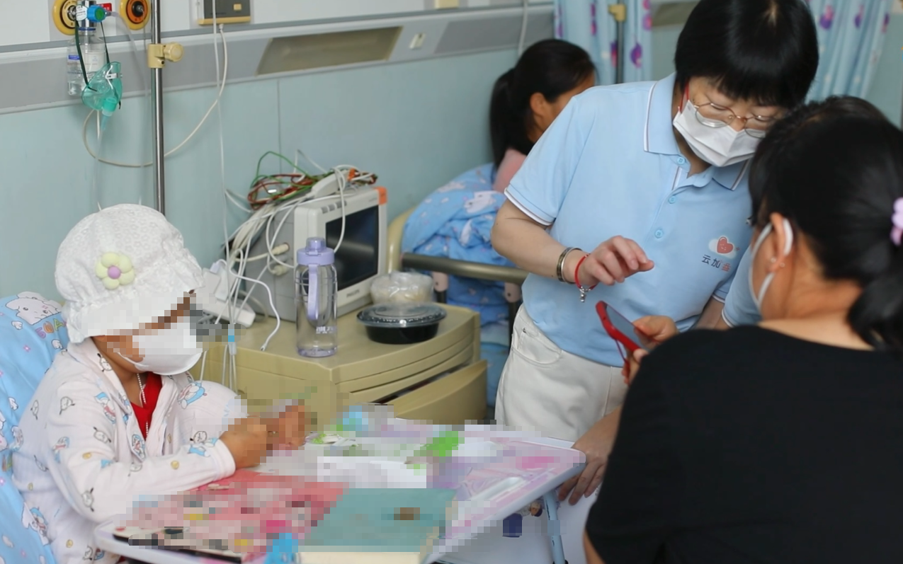 家住昆明的李女士向记者介绍,情绪疏导与日常照护的重要程度不言而喻。她想起去年女儿安安的肺部感染仍然心有余悸,“意外感染”意味着治疗过程中断,耗时耗力,并且耽误治疗时机。此时,4岁的安安刚做好一盏纸灯笼,双手抚摸灯笼上的卡通形象。她身旁的医务社工们佩戴着医用口罩,时刻关注着孩子们的状态。