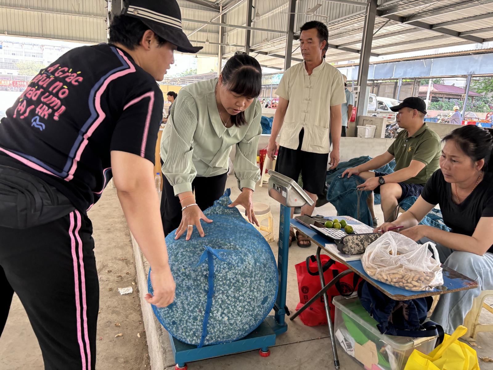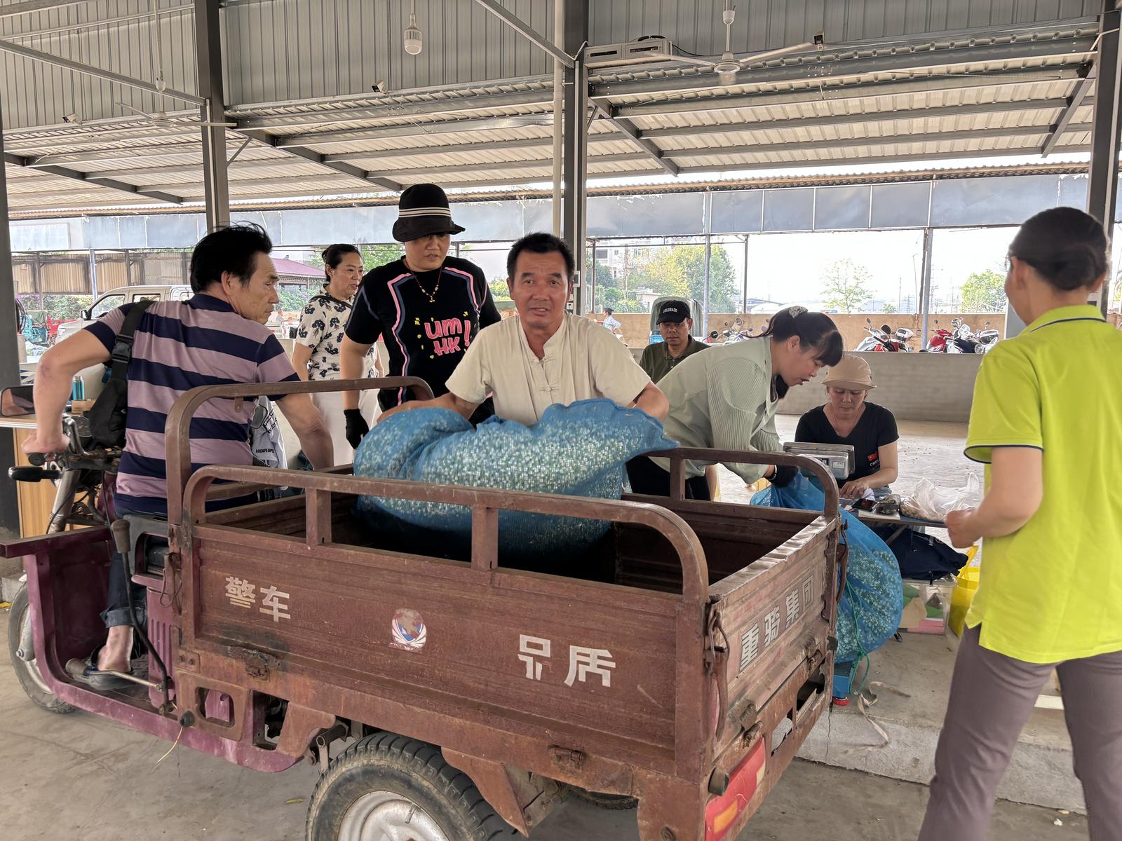 下午4点,位于元江城郊的茉莉花交易市场开始热闹起来,花农们肩扛手提,提着大袋小袋的茉莉鲜花来到交易市场进行交易。市场里不断响起吆喝声。收购点的工作人员手脚麻利地过秤、记账、结算,动作一气呵成;各地收购商则穿梭其间,俯身细嗅、翻看货源,忙着洽谈价格、敲定订单;新鲜收购的茉莉花也在市场里堆成了一座座花山。清甜的花香混合着此起彼伏的欢声笑语,满溢着丰收的喜悦。