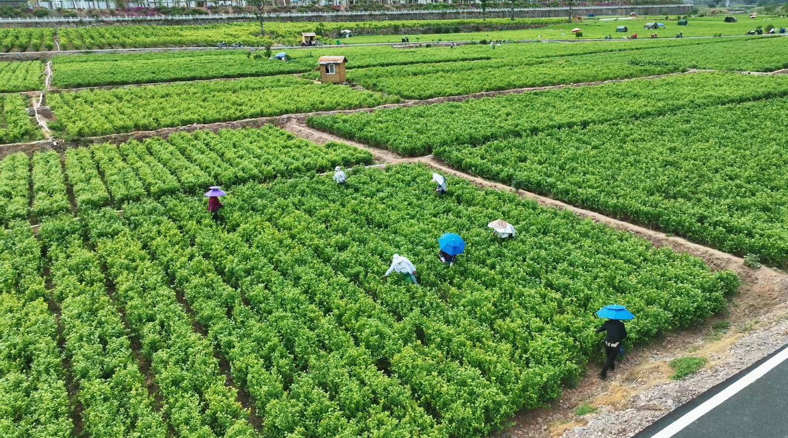 “今年我家种了六亩地,天气好,茉莉花又大又香、产量也高,自家人摘不完,还要请工人帮忙摘,一个人一天能摘十二三公斤。”花农李牛斗说。