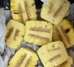 更让人无奈的是,菠萝的黑心很难通过看果皮、闻气味等方法发现,只有切开才能知道,并且黑心范围会随着时间的推移不断变大。