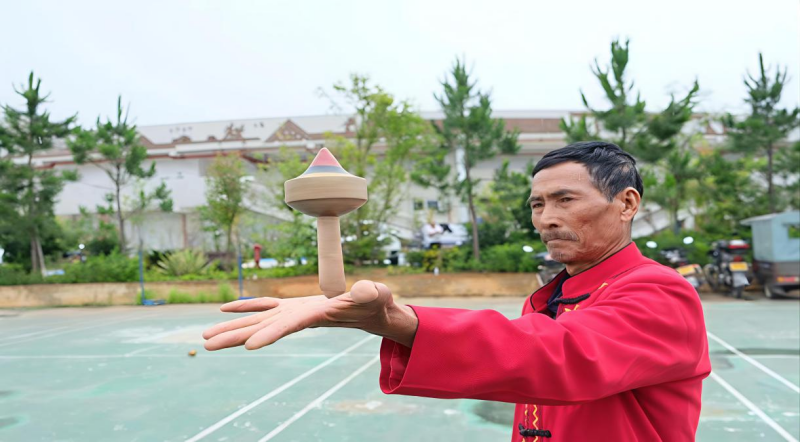 国家级非遗代表性项目,以形似鸡枞而得名。陀螺选用硬质木料精雕而成,抛甩旋转、击打竞技极具观赏性与参与性,是佤族节庆、聚会中必不可少的传统体育项目,尽显佤族豪迈奔放的民族性格。