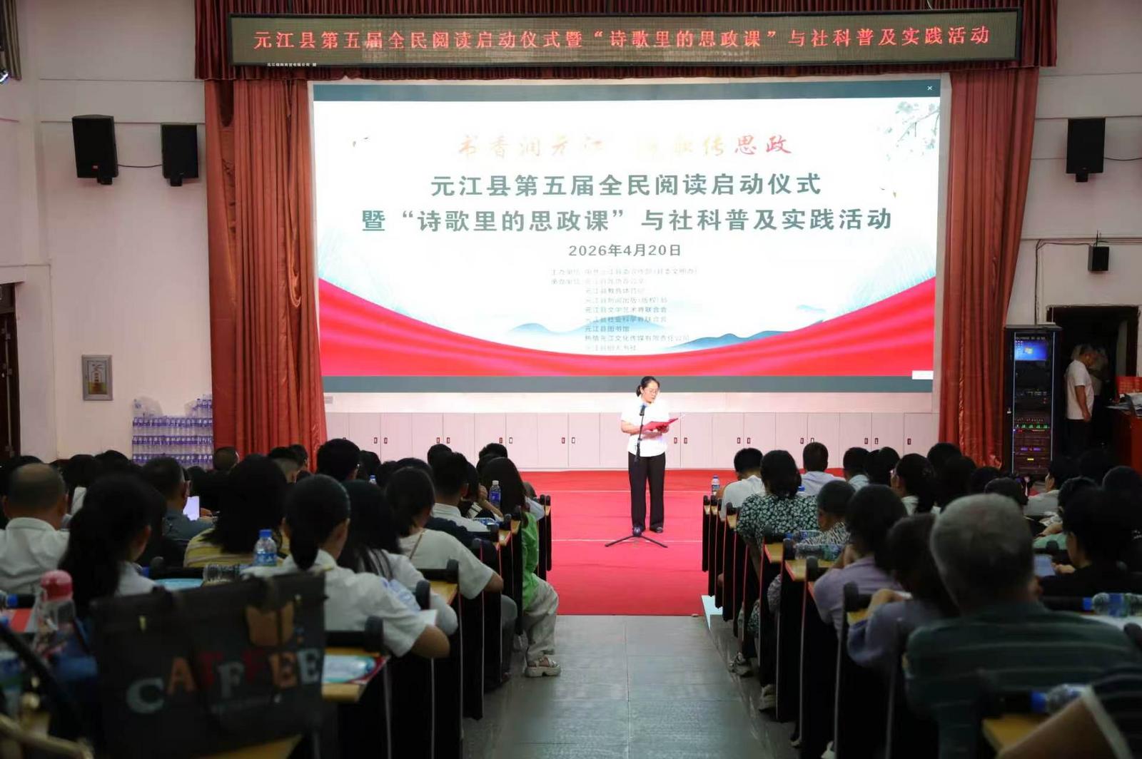 4月20日晚,玉溪市元江哈尼族彝族傣族自治县第五届全民阅读启动仪式暨“诗歌里的思政课”与社科普及实践活动在元江第四小学报告厅举行。